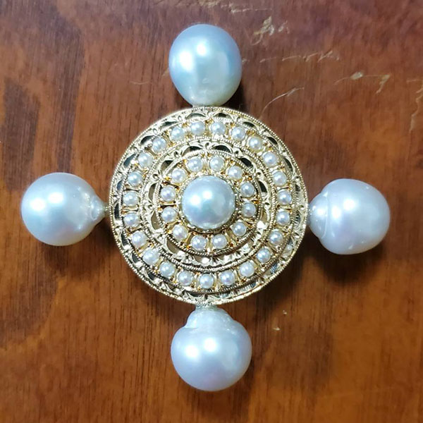 お手持ちのブローチにパールを足したり